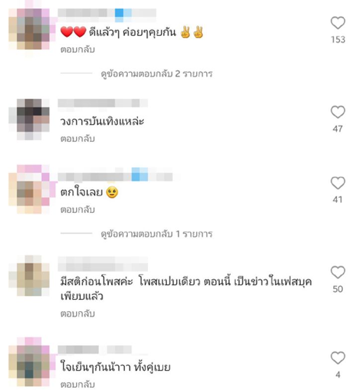 โดยข้อความตอบกลับจากสาวใบหม่อน ไม่เพียงแต่จะเป็นการยืนยันว่าเหตุการณ์ทั้งหมดไม่ใช่อย่างที่หลายคนกล่าวหาแล้ว เธอยังได้ย้ำอีกด้วยว่า ไม่มีทางที่จะเอาความรู้สึกมาทำอะไรแบบนั้นแน่นอน…“เราสองคนไม่เคยเอาเรื่องความรู้สึกมาทำคอนเทนต์ค่ะ มันดูตลก ขอบคุณค่ะ”